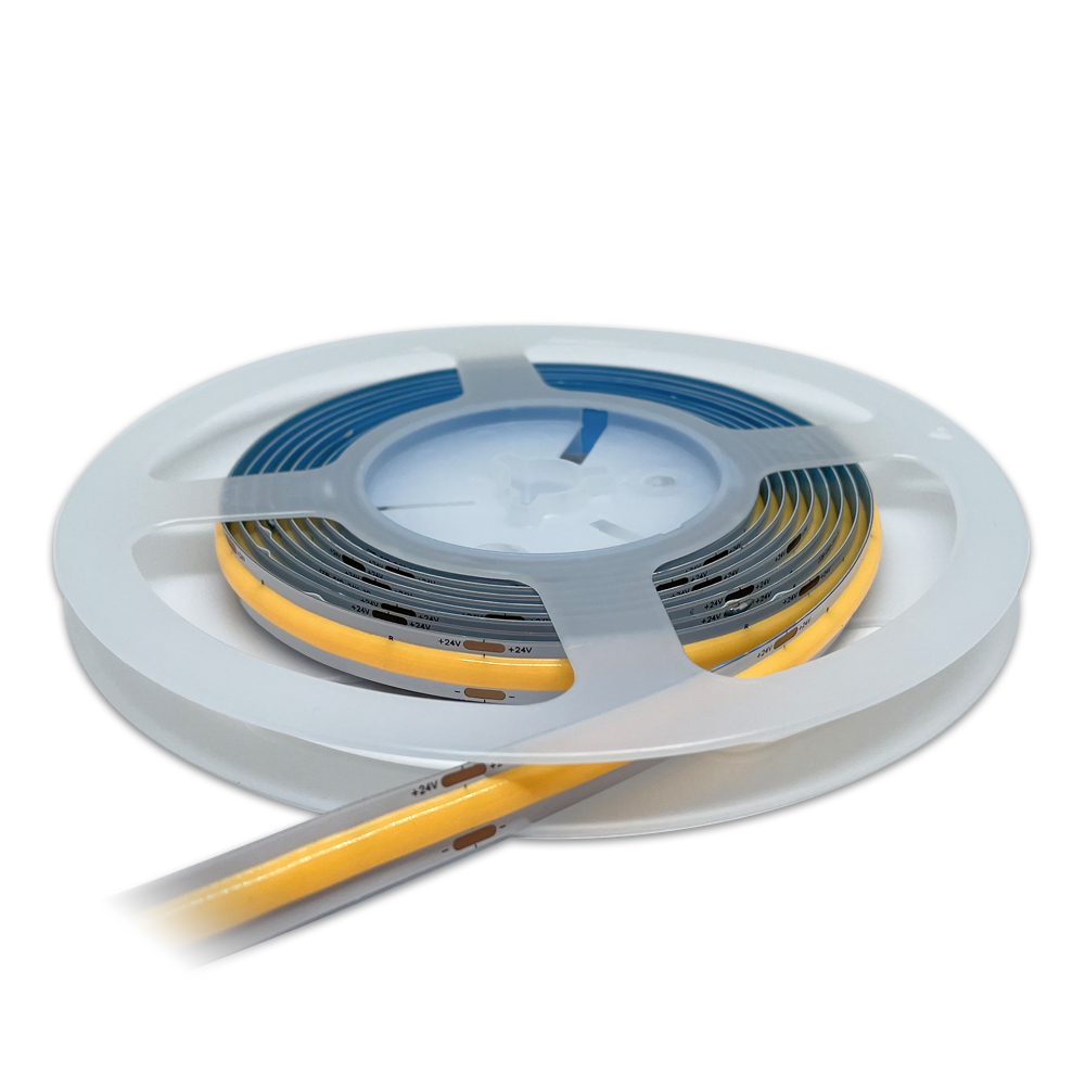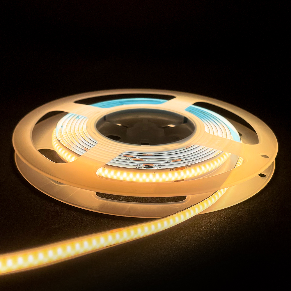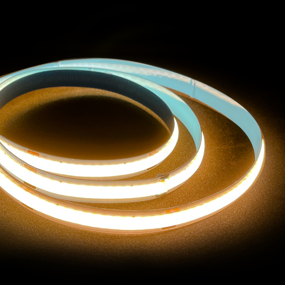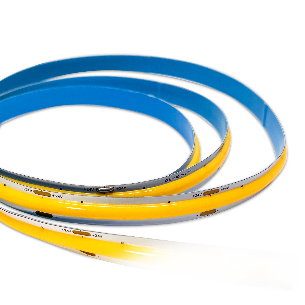 这款高CRI97 COB灯带,以DC24V低压供电,每米密布640颗LED,打造无颗粒感的连续光效。高显色指数(CRI≥97),能精准还原物体真实色彩,满足美术馆、高端零售、摄影补光等对色彩苛刻的场景需求。灯带封装工艺,光效提升30%的同时发热更低,配合柔性基板可自由弯曲贴合各类轮廓。无频闪设计确保长时间照明舒适性,适用于商超橱窗、家居装饰及精密工作台。
