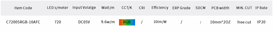 1.高密度灯珠,每米集成720个RGB LED。光线均匀,没有颗粒感,实现了无缝连续的照明效果。