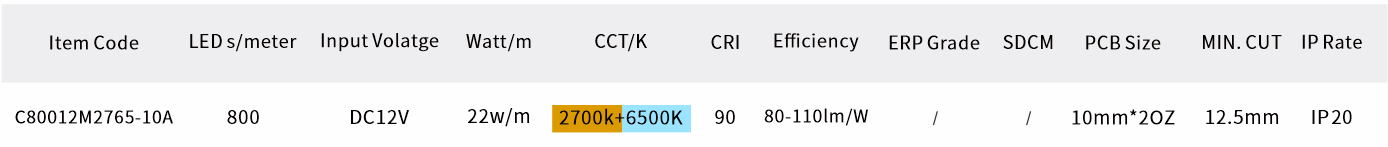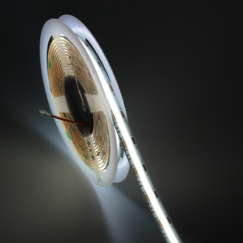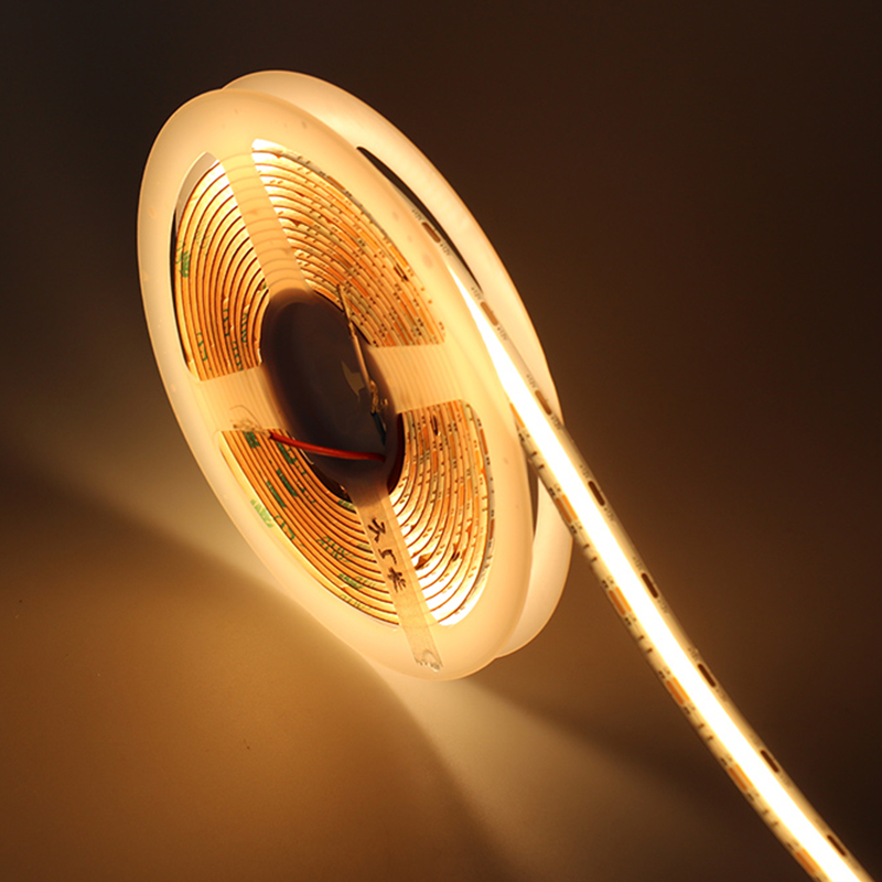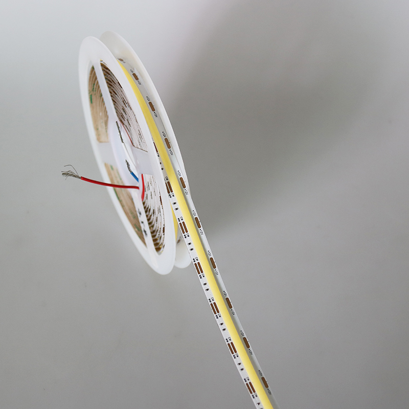 一款高光效、高灵活性的双色 COB LED 灯带,专为满足各种创意照明和装饰需求而设计。是暖色温(如 2700K-3000K)和冷色温(如 5000K-6500K),利用电路控制两种芯片的发光强度比例,从而实现色温在一定范围内的调节,满足不同场景下对光线颜色的需求。