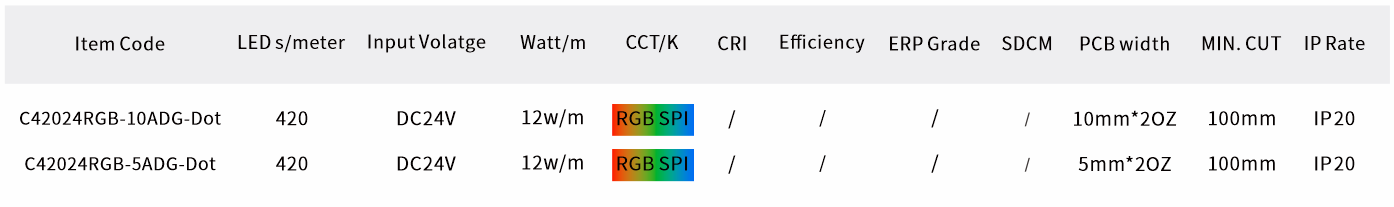 1. 点胶 RGB SPI DC24V COB条420LED/M 5mm/10mmPCB宽度8