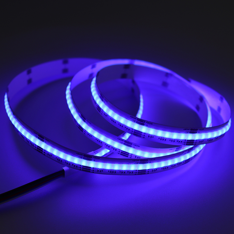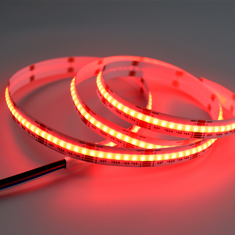 1. 每米有840个LED。采用COB封装技术,LED颗粒排列密集,光线均匀,没有颗粒感,实现无缝连续的光效。