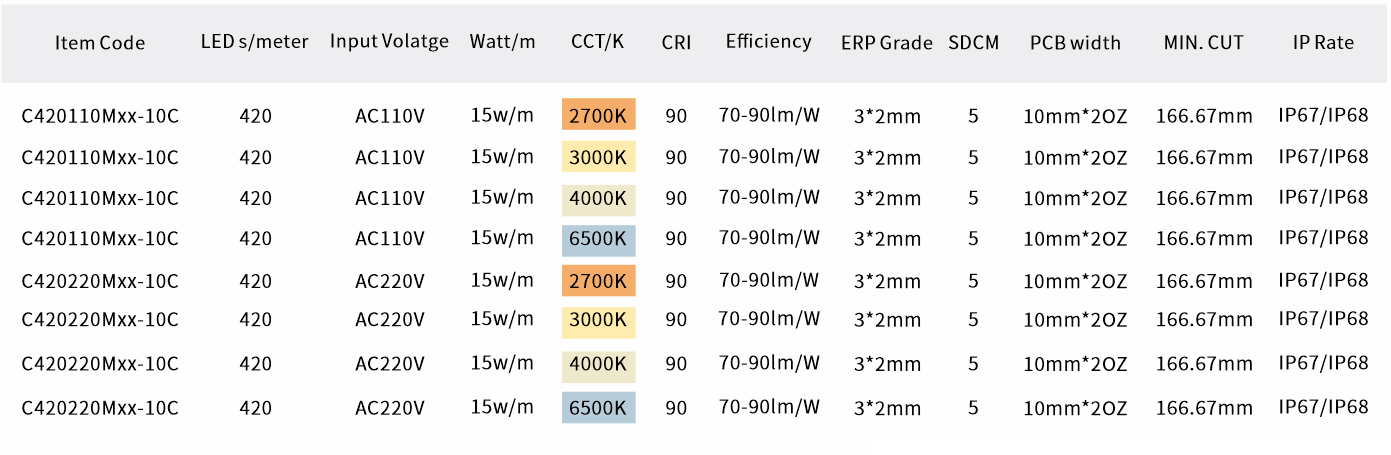 是一种高亮度、防水性能良好的LED灯带,适用于多种照明场景。它特点是直接使用AC110V电源,无需额外变压器,安装简便。IP67具备良好的防水防尘性能,适用于户外或潮湿环境耐用性强,设计坚固,适合长期使用.
